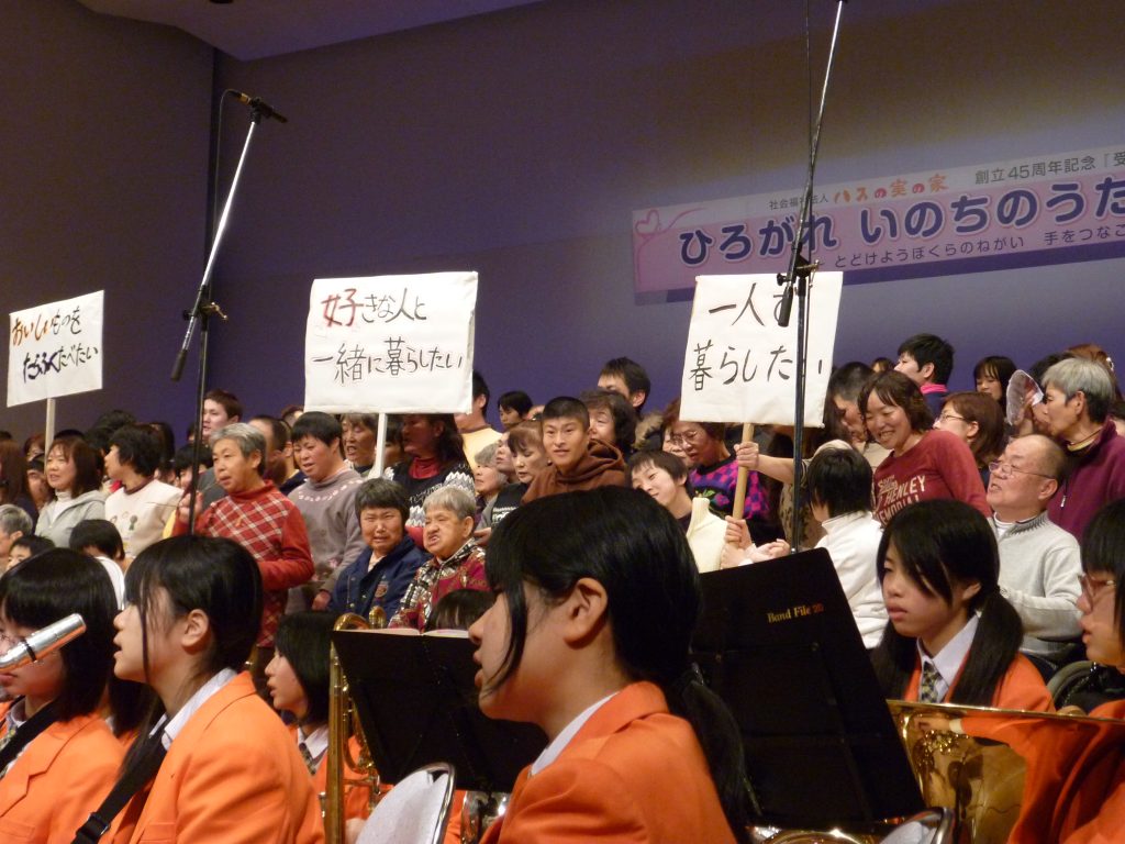 それから、利用者さん、家族会、スタッフともに、自分たちの願いを歌声にしたコンサートなどの文化芸術活動を活発に行って、周囲のみなさんに共感の輪を広げていったのです。