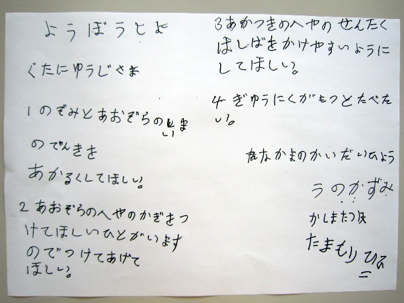 「ハスの実の家」の利用者さんがみんなの声をまとめた要望書