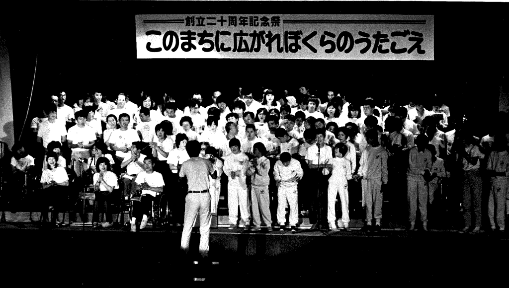 自分たちの気持ちを歌詞にして、仲間と歌う。そのいきいきとした姿が、ご家族の気持ちを動かしたのでしょう。翌年の1984年に開催した第1回目のコンサートでは、家族会の全員が一緒にステージに立って、歌ってくださいました。